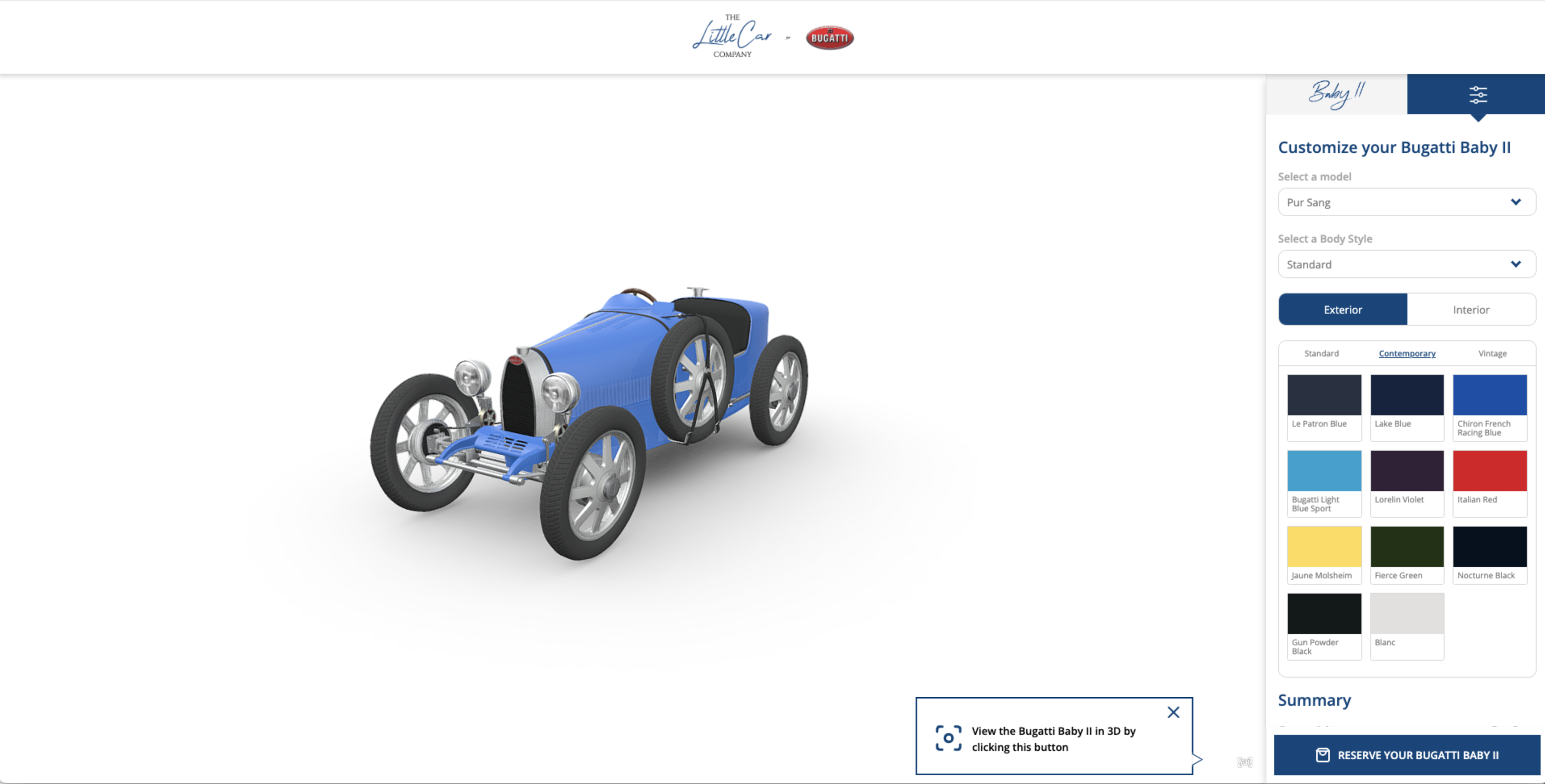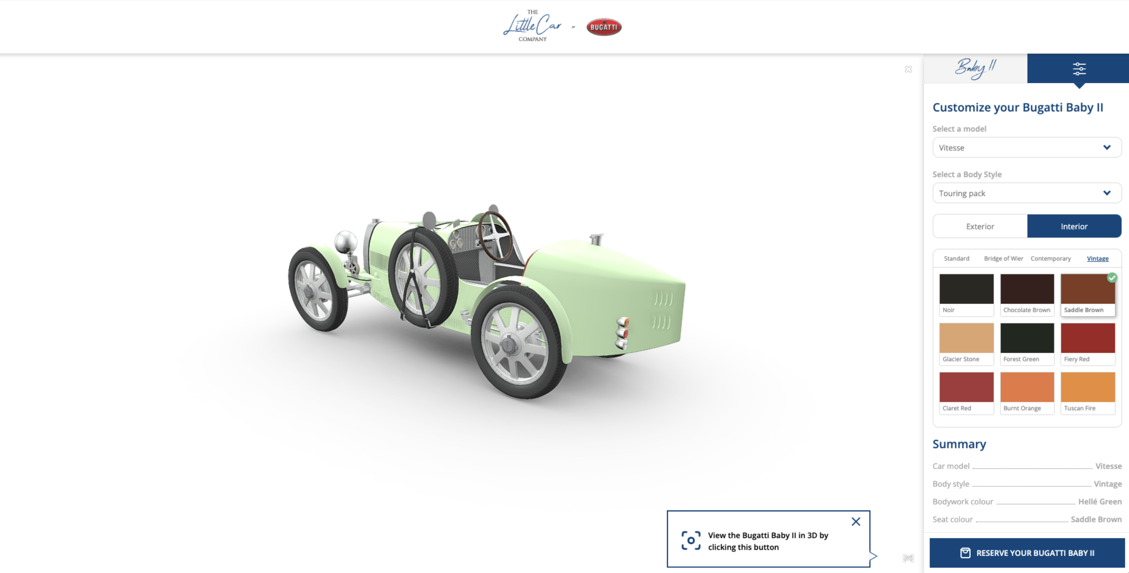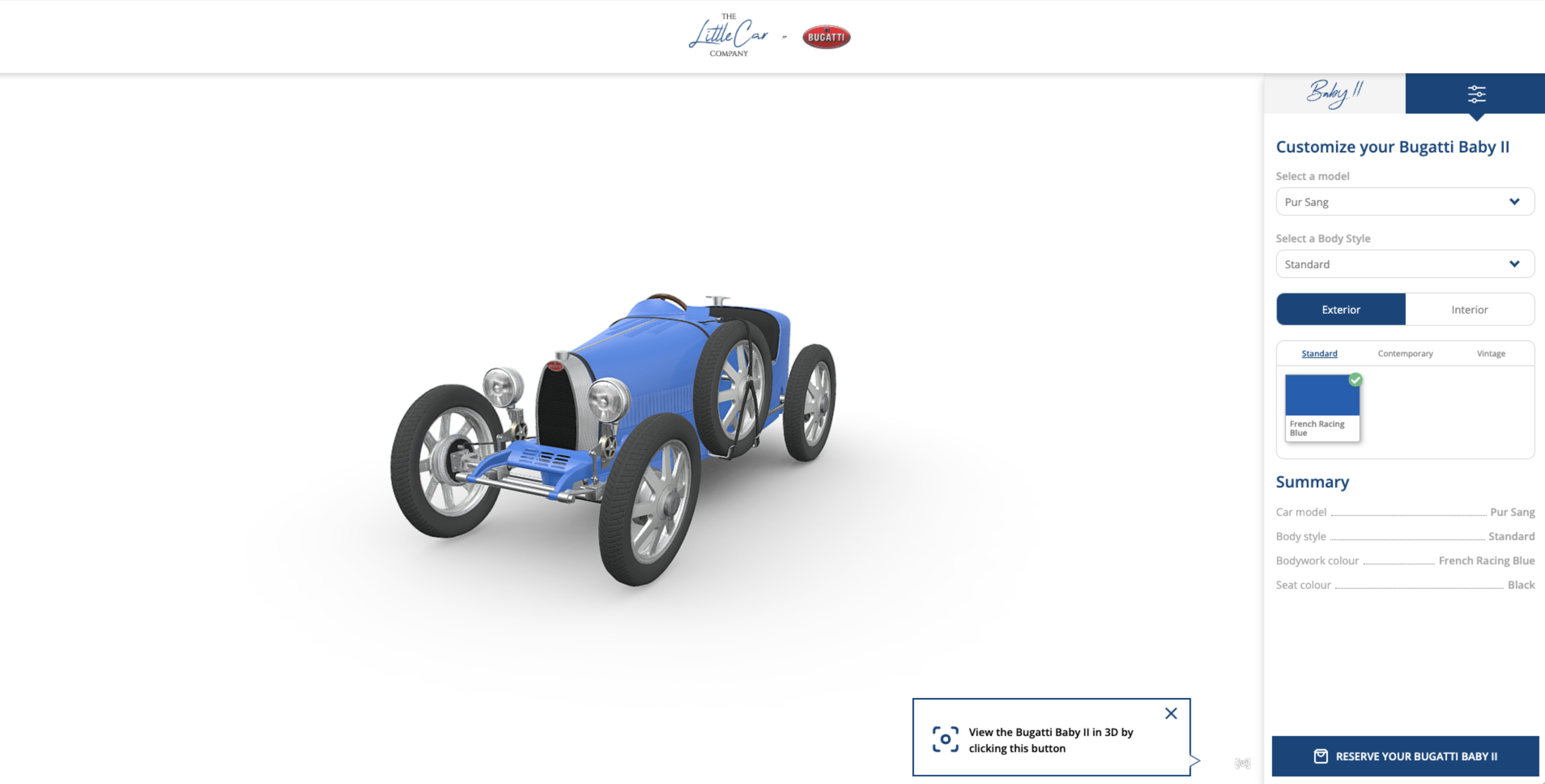 Bespoke Bugatti brought to life: The Little Car Company launches cutting-edge Bugatti Baby II configurator